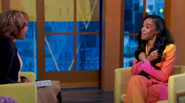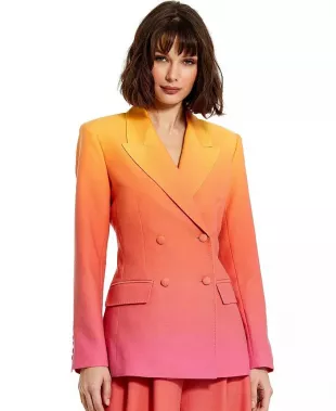 Blazer ombre de crepé cruzado de Mac Duggal usado por Michelle Williams como se vio en Good Morning America el 3 de febrero de 2025