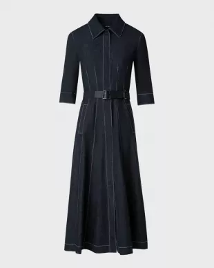 Vestido midi de mezclilla de algodón con cinturón Akris usado por Tory Johnson como se vio en Good Morning America el 17 de julio de 2025