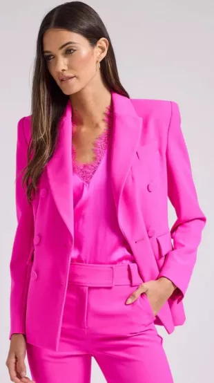 Blazer de crepé Hudson de Generation Love usado por Mary Bruce como se ve en Good Morning America el 21 de agosto de 2025
