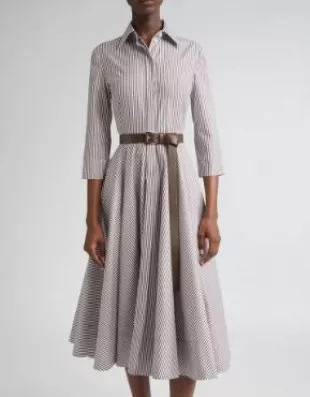 Vestido camisero con cinturón de popelina de algodón a rayas de la colección Michael Kors usado por Tory Johnson como se ve en Good Morning America el 15 de septiembre de 2025