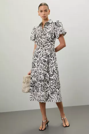 Vestido camisero de manga abullonada Toccin X RTR usado por Robin Roberts como se ve en Good Morning America el 1 de octubre de 2025