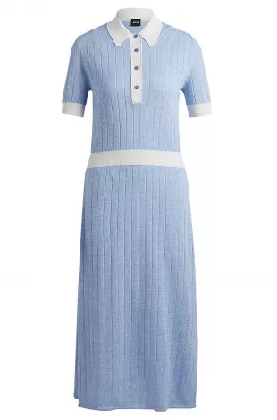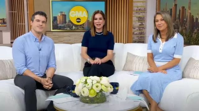 Vestido de mezcla de lino Boss con tapeta de botones usado por Ginger Zee como se ve en Good Morning America el 6 de octubre de 2025