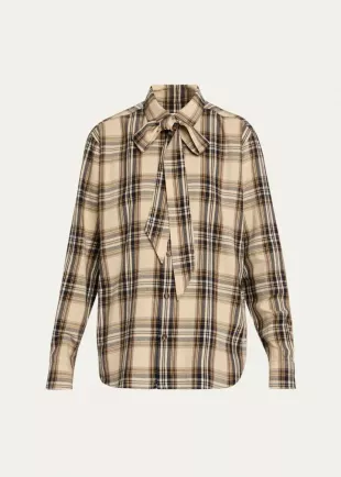 Blusa de seda con corbata a cuadros de Saint Laurent usada por Kelly Ripa como se ve en LIVE with Kelly and Mark el 1 de octubre de 2025