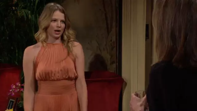 A.L.C. Renzo II Vestido Midi plisado sin mangas usado por Summer Newman Abbott (Allison Lanier) como se ve en The Young and the Restless el 11 de junio de 2023