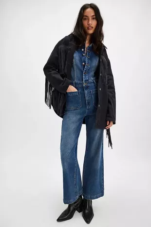 Mono marinero Rollas en azul vintage oscuro usado por Faith Newman (Reylynn Caster) como se ve en The Young and the Restless el 10 de diciembre de 2024
