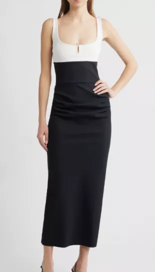 Chiara Boni La Petite Robe Shohey Vestido midi bicolor usado por Audra Charles (Zuleyka Silver) como se ve en The Young and the Restless el 19 de agosto de 2025