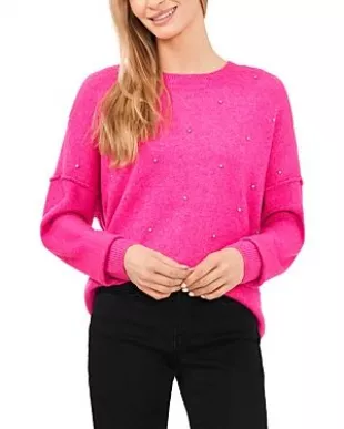 Suéter de cuello redondo con tachuelas de diamantes de imitación de Cece usado por Chonda Pierce visto en Sherri el 22 de enero de 2024