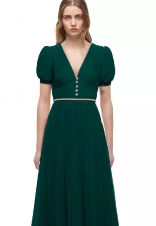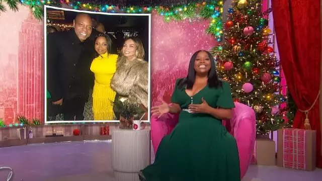 Self Portrait Vestido midi plisado de gasa verde oscuro usado por Sherri Shepherd visto en Sherri el 18 de diciembre de 2024