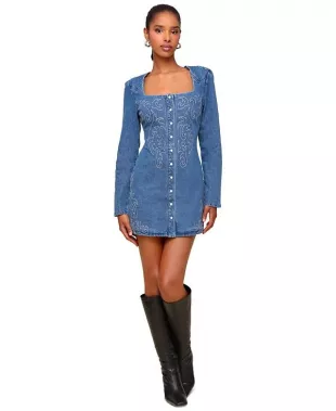Avec Les Filles Minivestido de denim de manga larga bordado occidental usado por Sherri Shepherd visto en Sherri el 31 de enero de 2025