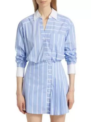 Veronica Beard Poppe Vestido camisero a rayas usado por Sherri Shepherd como se ve en Sherri el 8 de octubre de 2025