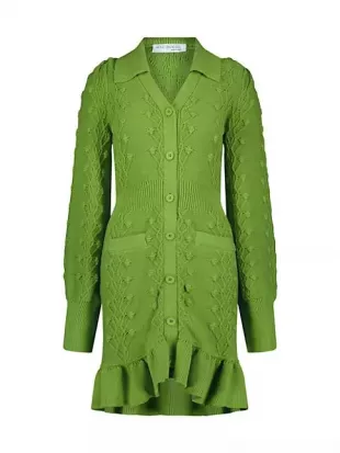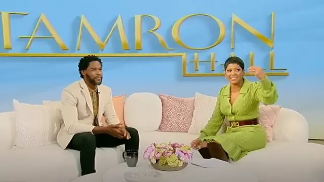 Minivestido de punto bobble de algodón de Mac Duggal usado por Tamron Hall como se vio en el desfile de Tamron Hall el 4 de diciembre de 2024