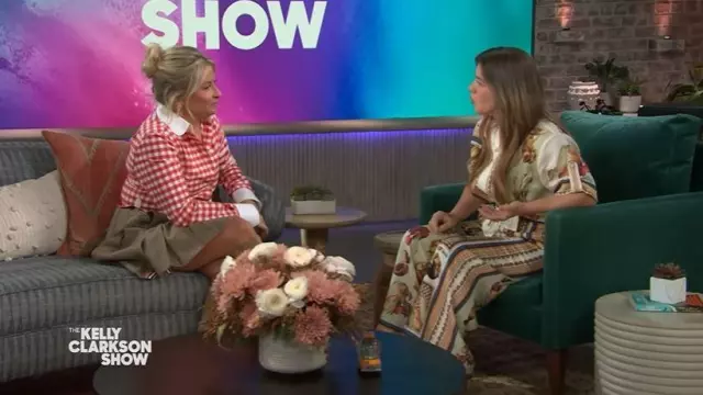 Minifalda plisada de técnica mixta de Thom Browne usada por Becky Robinson como se ve en The Kelly Clarkson Show el 28 de octubre de 2025
