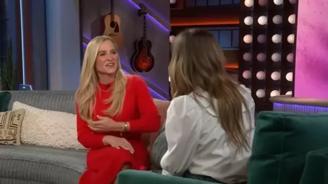 Suéter de cachemira Scanlan Theodore Crew usado por Jessica Capshaw como se ve en The Kelly Clarkson Show el 29 de octubre de 2025
