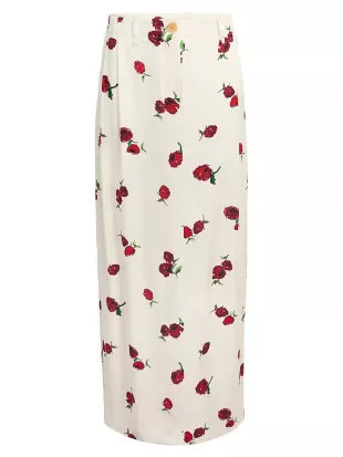 Falda larga con estampado de frambuesa de seda Khaite Lucian usada por Sara Haines como se vio en The View el 18 de junio de 2025