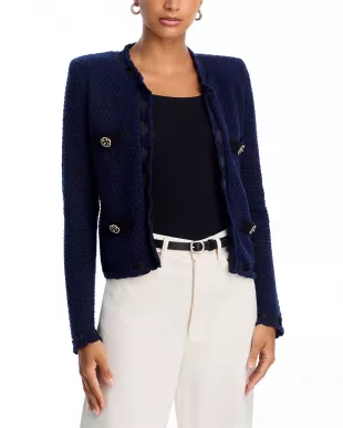 Cárdigan con ribete en contraste L'Agence Astor usado por Joy Behar como se ve en The View el 23 de octubre de 2025