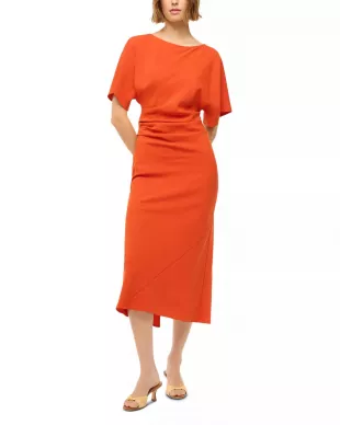 Vestido midi fruncido de Staud Amelie usado por Ana Navarro como se ve en The View el 11 de noviembre de 2025