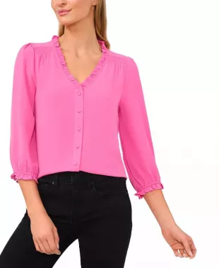 Blusa Cece con volantes y botones en la manga del codo usada por Liz Kreutz como se ve en Today el 1 de agosto de 2025