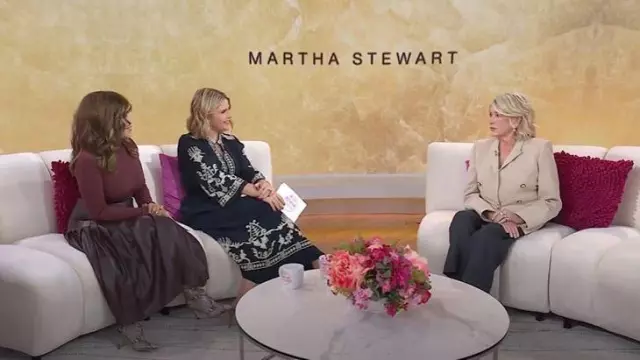 Falda Clarissa de Christy Lynn Maroon usada por Rosie Perez como se ve en Today with Jenna & Friends el 17 de septiembre de 2025