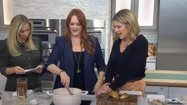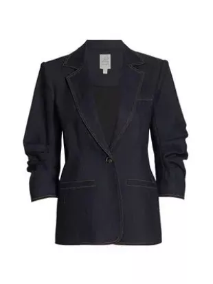 Blazer de mezclilla con manga fruncida de Cinq a Sept Khloe usado por Ree Drummond como se ve en Today with Jenna & Friends el 29 de octubre de 2025
