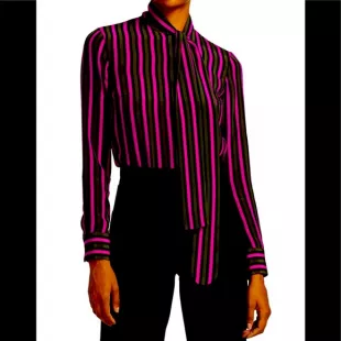 Akris Punto Stripe Tie Neck Silk Blusa usada por Addy como se ve en 9-1-1: Lone Star (S03E13)