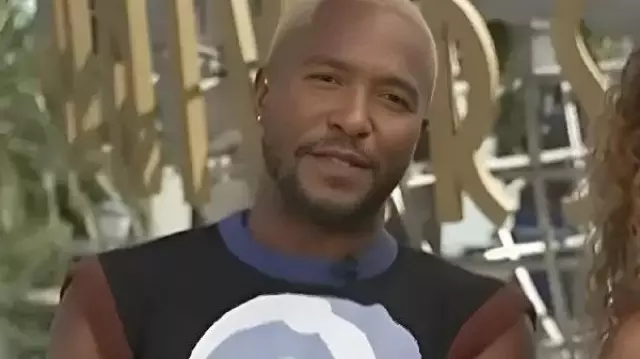 Chaleco facial abstracto de Scott Evans de Access Hollywood como se ve en Access Hollywood