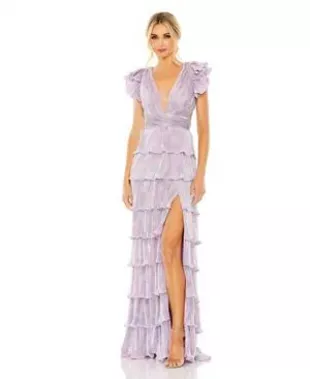 Mac Duggal Ieena Vestido con volantes cruzados con cordones cruzados usado por Emmy Russell como se ve en American Idol (T22E17)
