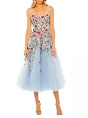 Vestido midi de tul de Mac Duggal usado por Carrie Underwood como se ve en American Idol (T23E11)