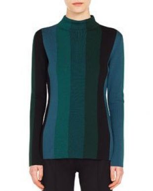 Akris Punto Turtleneck Slit Long-Sleeve Striped Wool Knit Top usado por la Dra. Meredith Grey (Ellen Pompeo) en Grey's Anatomy (S15E16)