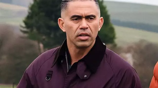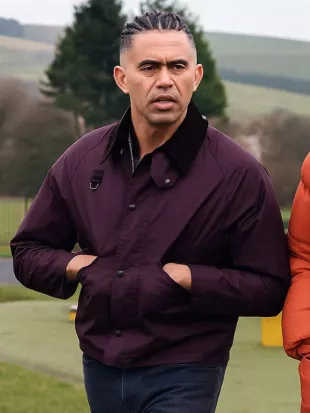 Brassic S07 Aaron Heffernan Chaqueta morada usada por (Aaron Heffernan) en Brassic