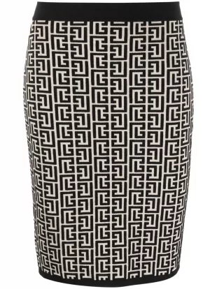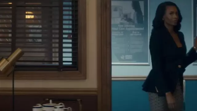 Minifalda con patrón de monograma de Balmain usada por la Dra. Carol Pierce (Tamberla Perry) como se ve en Mentes brillantes (S02E02)