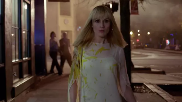Akris Calendula-Print Georgette Túnica Vestido usado por Letty Raines (Michelle Dockery) como se ve en Good Behavior S01E01