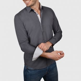 La camisa curva gris oscuro que lleva Sebastián (Sebastián Wainraich) en Heureux... o casi (S01)