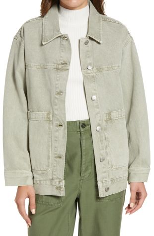Madewell Garment-Dyed Denim Patch Pocket Trucker Jacket usado por la Dra. Vanessa Taylor (Asjha Cooper) como se ve en el vestuario de la serie de televisión Chicago Med (S07E05)