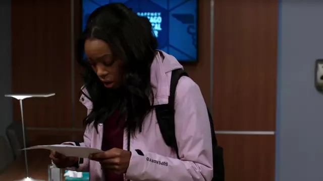 Chaqueta de ataque Superdry Freestyle en rosa suave usada por la Dra. Vanessa Taylor (Asjha Cooper) como se ve en Chicago Med (S07E09)