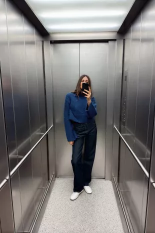 Suéter de punto suave de Zara en azulado usado por Naomi Howard (Ashlei Sharpe Chestnut) como se ve en Chicago Med (T10E18)