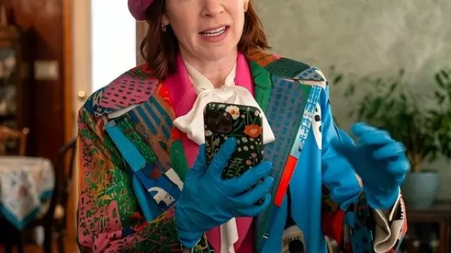 Elsbeth Season 3 Carrie Preston Dot Jacquard Crop Cardigan