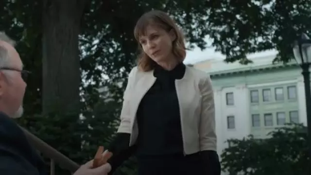 Chaqueta de cosecha eliaana blanca de Ted baker usada por la Dra. Kristen Bouchard (Katja Herbers) en Evil Temporada 1 Episodio 2