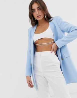 Teoría blazer esencial azul claro usado por la Dra. Kristen Bouchard (Katja Herbers) en Evil Temporada 1 Episodio 2