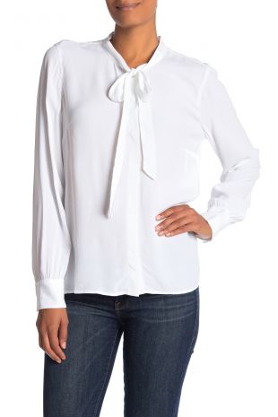 J. Crew White Tie Neck Secretary Blusa usada por Kristen Bouchard (Katja Herbers) en Evil Temporada 1 Episodio 7