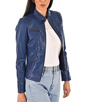 Chaqueta de cuero azul usada por Kristen Bouchard (Katja Herbers) en el programa de televisión Evil (Temporada 1 Episodio 8)