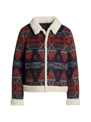 Wool Double-Face Short Jacket with with Faux Leather Superposé Grid Embellishment