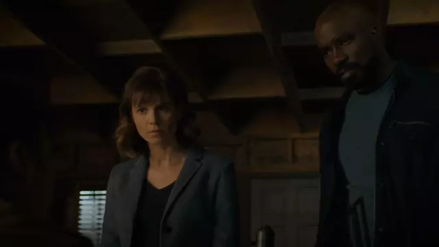 Teoría Wool-Blend Shrunken Blazer usado por Kristen Bouchard (Katja Herbers) como se ve en Evil (S01E10)
