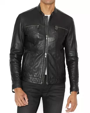 Chaqueta de cuero John Varvatos Band Collar usada por David Acosta (Mike Colter) como se ve en Evil (S02E04)