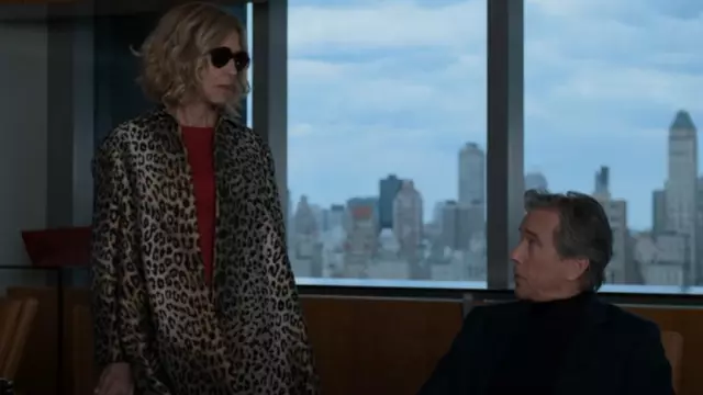 Sara Battaglia Plisado Leopard Jacquard Abrigo usado por Sheryl Luria (Christine Lahti) como se ve en Evil (S02E12)