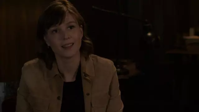 Chaqueta Theory Suede Trucker usada por Kristen Bouchard (Katja Herbers) como se ve en Evil (S02E12)