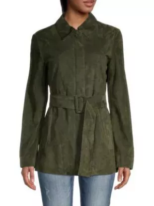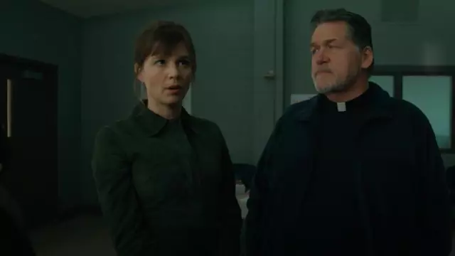 Chaqueta utilitaria Theory Gloss Lamb Suede usada por Kristen Bouchard (Katja Herbers) como se ve en Evil (S04E06)