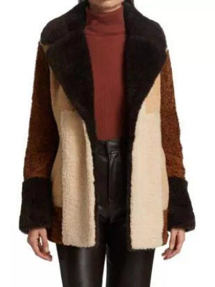 Abrigo de peluche A.L.C. Stefan Colorblock usado por Sheryl Luria (Christine Lahti) como se ve en Evil (T04E07)