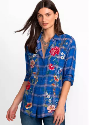 Johnny Was Mila Camisa de gran tamaño usada por Gabby (Melissa Peterman) como se ve en Happy's Place (T01E18)