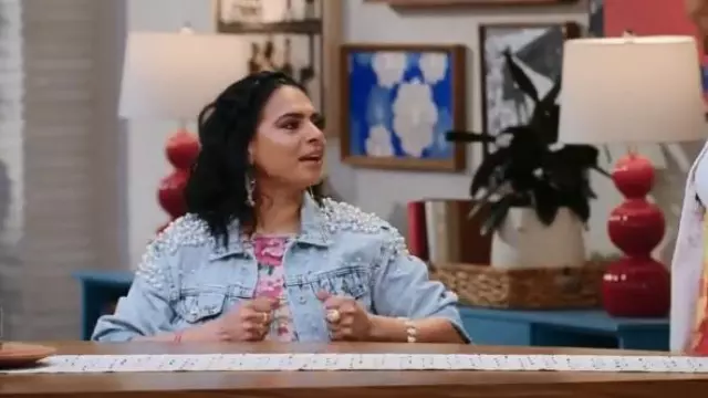 Hixiaohe Bordado Perlas Cuentas Chaqueta Vaquera usada por Maneet Chauhan como se ve en It's CompliPlated (S01E03)