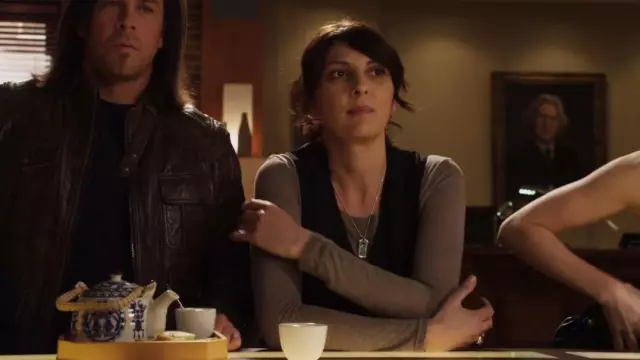 Joyería de Cari Large Dog Tag en oro usado por Sophie Devereaux (Gina Bellman) como se ve en Leverage (S03E02)